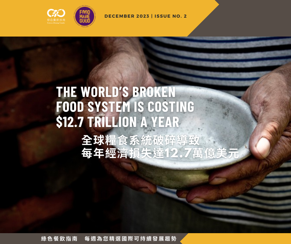 聯合國糧食及農業組織(FAO)今年發表的《糧食及農業狀況報告》指出,全球糧食系統的隱性成本總計高達12.7萬億美元,相當於全球國內生產總值近一成。
