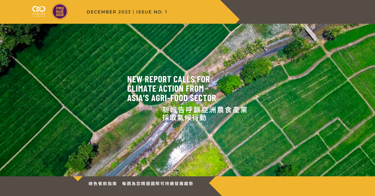 一份新報告呼籲農食產業主要參與單位,採取緊急行動應對氣候變化,投資技術層面,並支持現行解決方案以協助小型農場,報告獲得亞洲農食系統的主要參與者支持。該報告稱,有關行動有助於2030年前減少12%溫室氣體排放量。